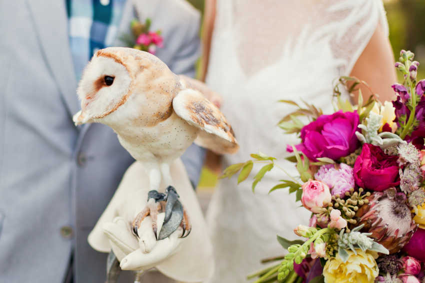 Owls and even hawks are increasingly swooping in as wedding ring bearers and for couples that enjoy the appearance of animals at their celebrations, this is a real winner. There can be a huge impact when a large white barn owl swoops in, soaring down the aisle with a tiny pouch attached to its legs. The best man is tasked with then gently untying the pouch and retrieving the wedding rings before the bird flies off and is reunited with its handler.