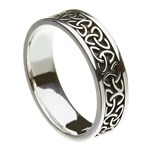 This stunning ring features a set of trinity knots which wrap around the entire ring. The trinity knot has had many meanings throughout history, from the pagan Celts to the Early Irish Christians. The pagans designed it so each link in the knot represented an influential natural element; earth, air and water. The Christians adapted the knot to represent the Holy Trinity Father, Son and Holy Spirit.