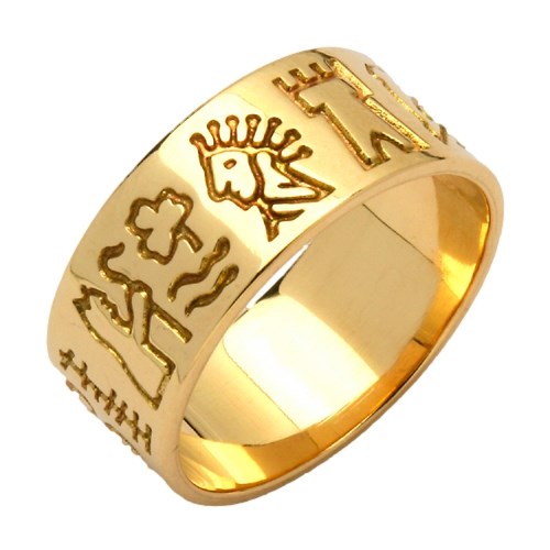 What are your impressions of Ireland? Whatever they are, it is likely that many of them are contained in this interesting ring. The Impressions of Ireland yellow gold ring features engravings of key ancient symbols that depict historic and important moments from Ireland’s past. The intricate symbols include a shamrock, snakes, Saint Patrick and a symbol of Ireland’s most ancient language, Ogham. This is a ring with true meaning and symbolism.