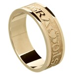 Celebrate your enduring commitment with the Love Loyalty Friendship Yellow Gold Wedding Ring, a handcrafted piece that embodies the timeless Irish values of love, loyalty, and friendship. This elegant band is inscribed with the Irish phrase “Grá Dílseacht Cairdeas” (pronounced: Graw Deal-Shocked Car-dass), translating to “Love Loyalty Friendship,” encapsulating the essence of your bond.