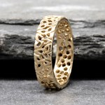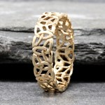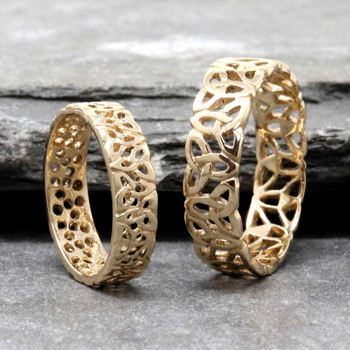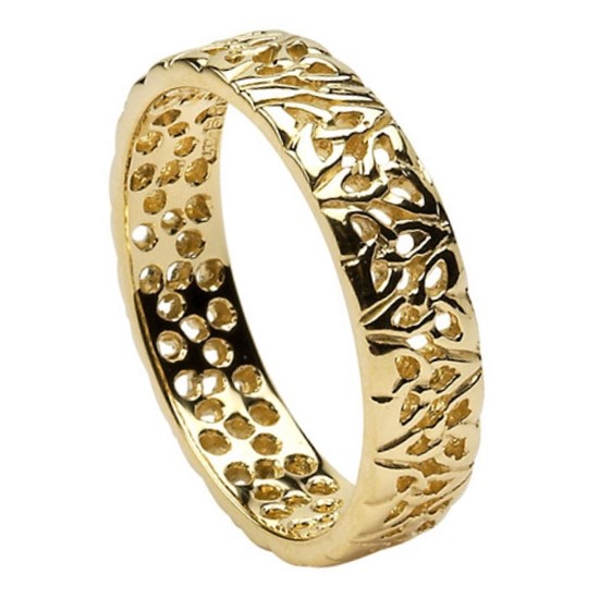 The filagree design shows off the Trinity knots, which are embedded throughout the band and the piercing brings additional light and a sense of added intricacy.