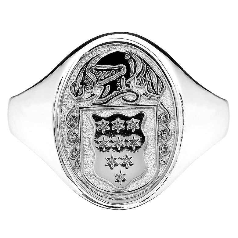 Wearing a piece of jewelry featuring your own personal history can now become a reality with this unique ladies coat of arms oval white gold ring.