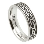 The traditional Celtic waves pattern weaves around the band of the ring with surrounding lines also deeply etched in to the precious metal standing out in the design. The symbolic design really stands out in the sterling silver creating a beautiful impact.