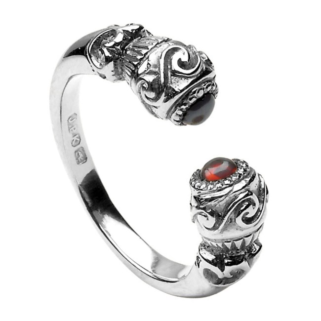 Celtic Red Stone Set Torc Antique White Gold Ring