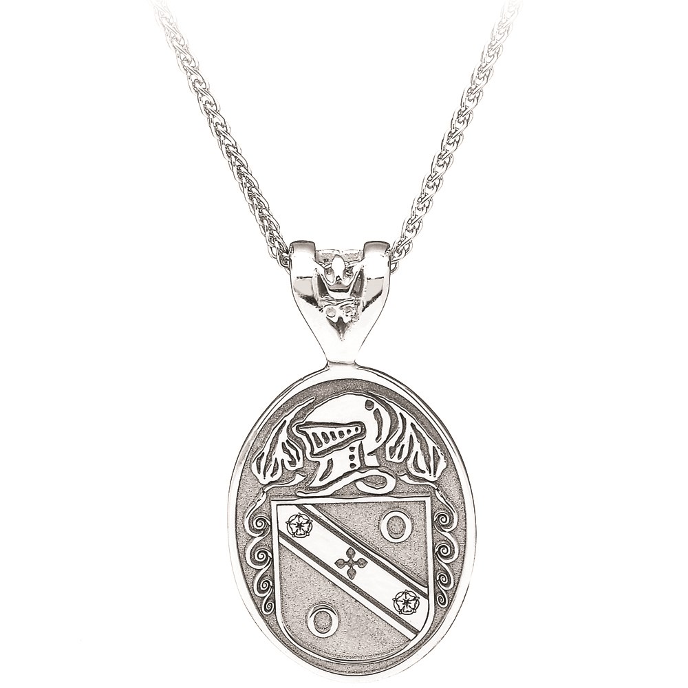 How do you find a jewelry gift like no other that will really mean something to the recipient? This Coat of Arms Oval White Gold pendant is a great place to start. If you want to celebrate Irish and Celtic heritage in a very distinctive way, then this pendant, which is available in solid 10k or 14k white gold can have your family Coat of Arms engraved in to it.