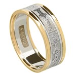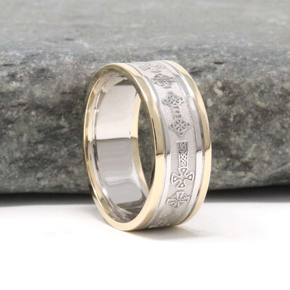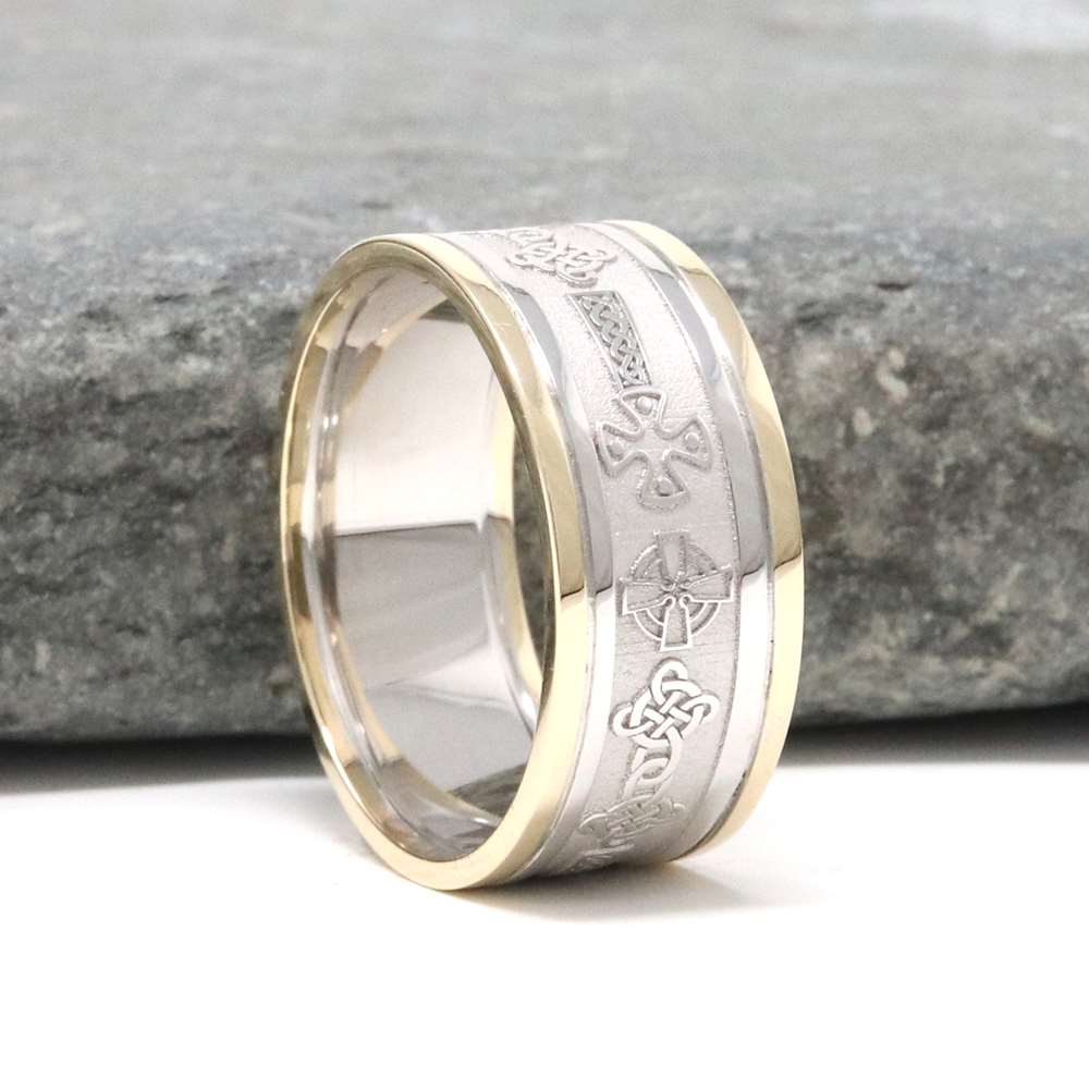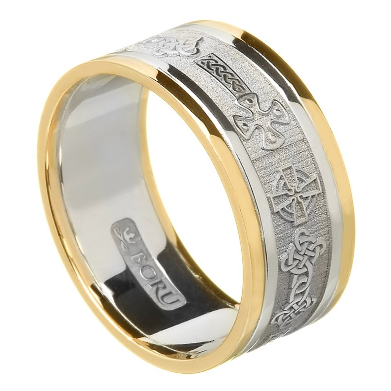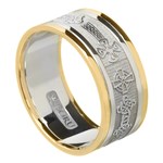 Celtic Cross Silver Wedding Ring with Gold Trim