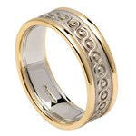 The combination of silver and gold makes this beautiful ring an absolutely stand-out piece of jewelry. The design of this ring brings in Irish and Celtic heritage beautifully but in a subtle way. The repeat pattern of the Celtic knot gives the ring a texture that is eye-catching and the fact that the silver pattern is then trimmed with gold on either side makes the repeated motif stand out even further.