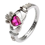 This elegant July birthstone Claddagh ring with Ruby cubic zirconia stone is available in solid sterling silver.