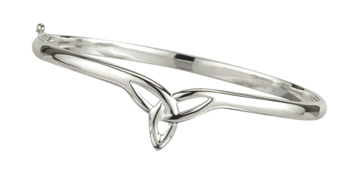 A shiny silver bangle looks wonderful on tanned summer skin. This Celtic Trinity Knot bangle represents the natural forces of earth, air and water. There are many different interpretations around the trinity knot. Traditionally it was common for a man to give a gift to a loved one to represent his affection for her. The trinity knot is believed to represent the key factors in a relationship which are to love, honor and protect. The knot design looks beautiful embedded in to this Celtic Trinity Knot bangle.