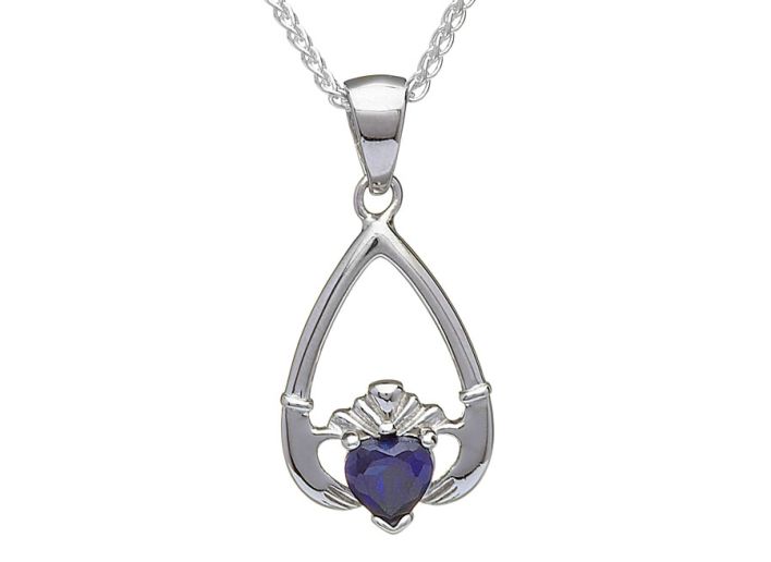 Sapphires range from light blue to a deep purplish blue and represent a clear mind, peace and purity. This Sapphire Claddagh pendant is ideal as a gift to a loved one or even as a gift to yourself! This traditional Irish design has many customs associated with it. The motto of the Claddagh is ‘let love and friendship reign’ and the single heart of true love is surrounded by hands to represent friendship and topped off with a crown for loyalty.
