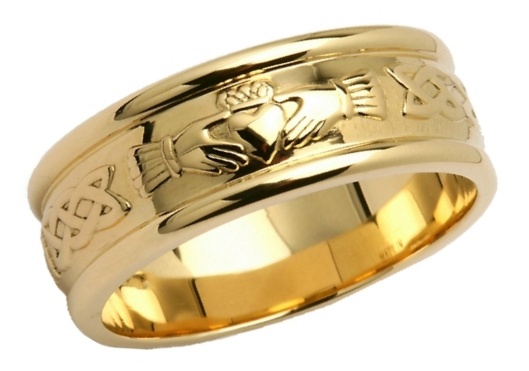 The Claddagh and Celtic Knot Wedding Band ring is available for both ladies and gents and is an equally popular choice for both. It comes in 10k, 14k or 18k yellow gold and is also available in silver or in white gold, so there is a version of this ring suitable for any budget.