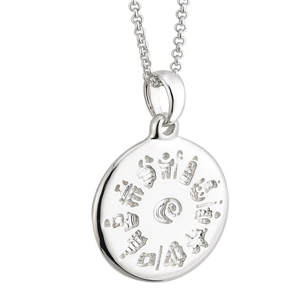 This is a disc with added edge as the symbols on this handcrafted solid silver pendant tell the story of the History of Ireland up until the present day – from round towers to Celtic high crosses.