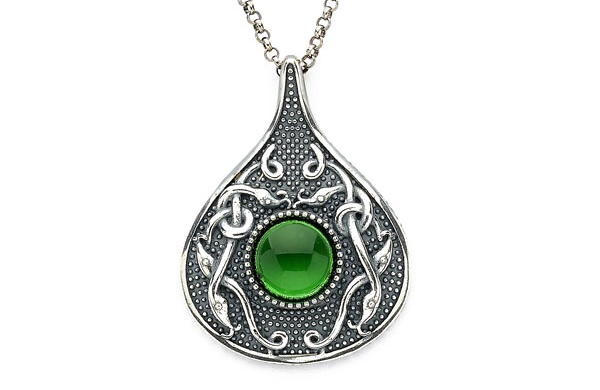 Viking Teardrop Anhänger mit grünem Glas Stein
