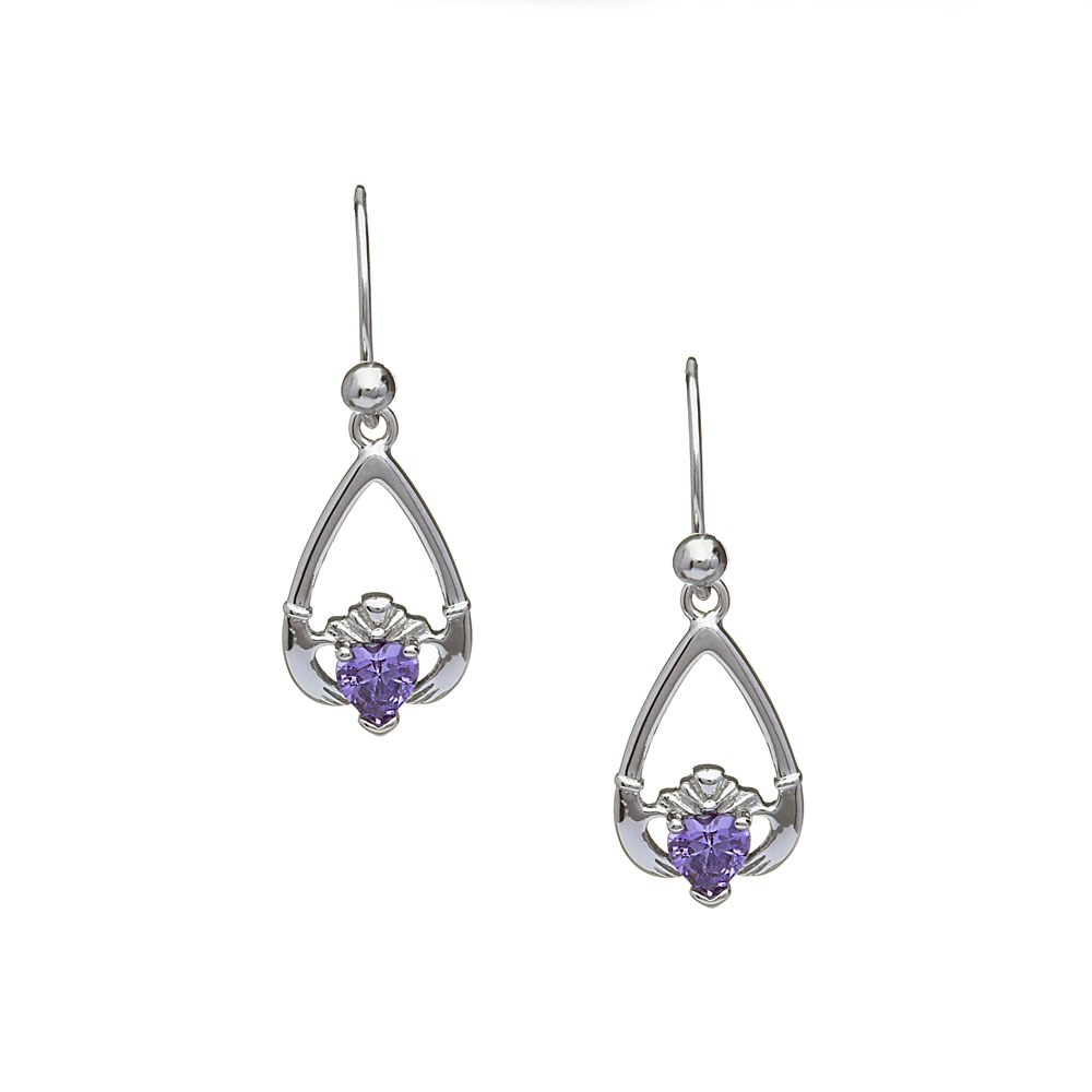 Diese eleganten Claddagh-Ohrringe mit Amethysten, dem Geburtsstein für Februar, sind in Silber, 10- und 14-karätigem Gelbgold sowie in 10- und 14-karätigem Weißgold erhältlich.