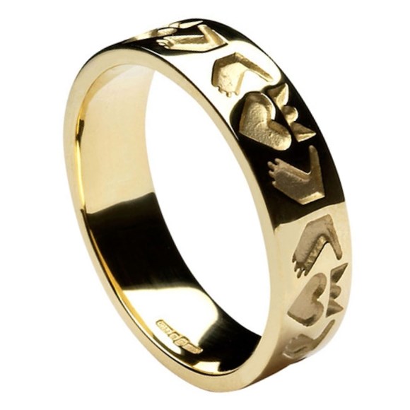 Tradicionalmente, los anillos de Claddagh se pueden llevar de tres maneras distintas, cada una con un significado diferente en la búsqueda del amor. Si se lleva en la mano derecha con el corazón hacia afuera, apuntando al clavo, significa que el corazón está libre. Si el corazón apunta hacia adentro, hacia el nudillo de la mano derecha, indica que el corazón ya no está disponible. Y, por último, si el anillo de Claddagh se lleva en la mano izquierda, significa tradicionalmente que el amor está comprometido.