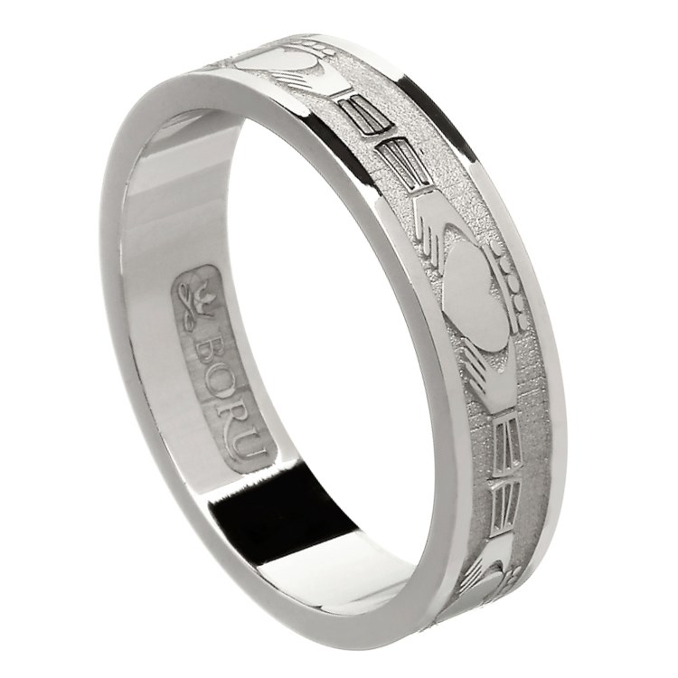 Si te entusiasma la idea de lucir un anillo Claddagh pero deseas incorporarlo de una manera más sutil a tus joyas de boda, entonces esta alianza de boda puede ser la perfecta para ti.