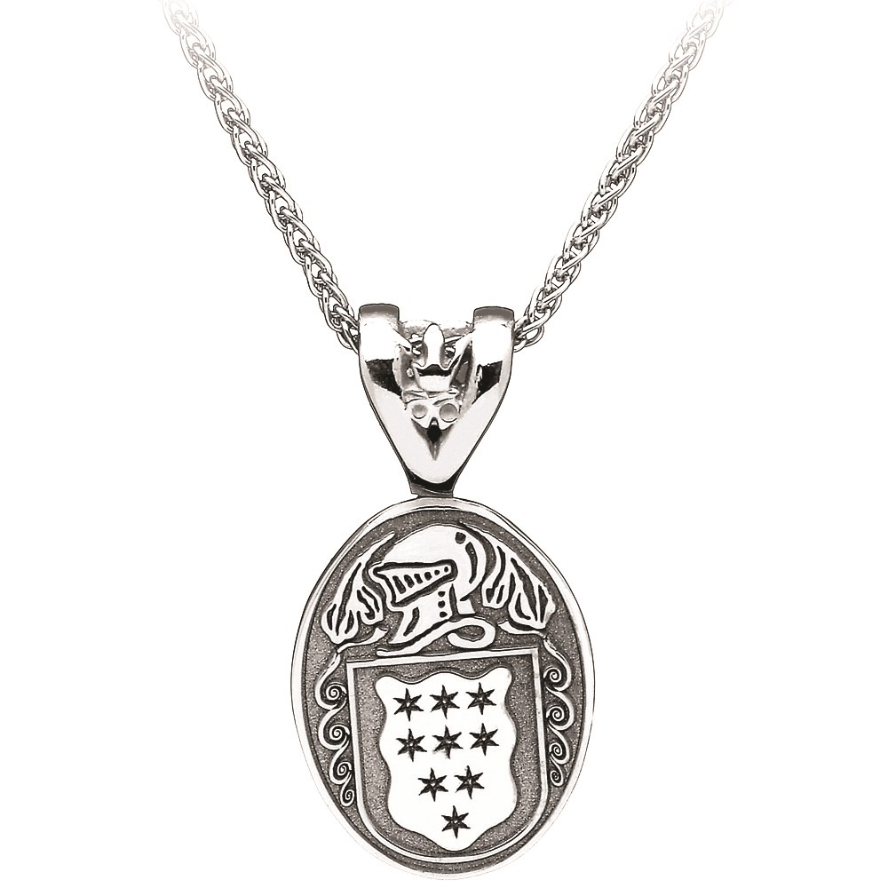 Si vous souhaitez un bijou qui représente avec élégance votre héritage familial irlandais, ce magnifique pendentif ovale est un choix parfait. Gravé avec finesse, ce bijou discret et affirmé est entièrement personnalisable. Choisissez simplement les armoiries correspondant à votre nom de famille irlandais et faites-les graver à la main sur ce pendentif. Il est disponible en argent, ainsi qu'en or blanc et jaune 10 et 14 carats.