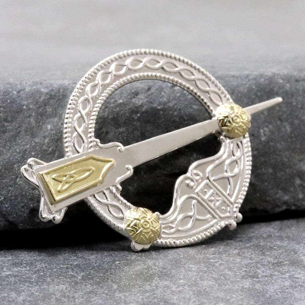 Traditional Large Silver with 18k Gold Tara Brooch
