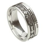 I ordered while we were in Dublin. It arrived not long after we got home. I was so amazed at the intricacy of the engraving. I have been wearing it every day since I received it. Love that it is designed with a cushion-fit inner section. My weight fluctuates a bit and this allows me to wear it regardless of my weight changes. This level of quality of workmanship is not seen that often. Really very happy with the purchase. One of my favorite pieces.