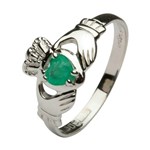 Ladies Claddagh Heart Emerald Set Ring