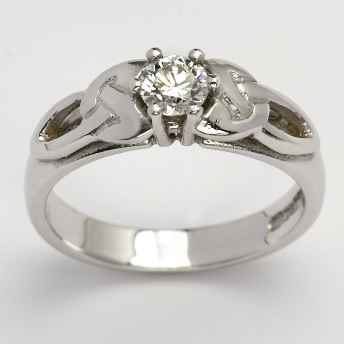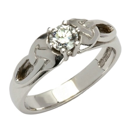 / Bijoux celtiques / Bagues de diamants celtiques / Trinity Knot White Gold Solitaire Ring with Brilliant Cut Diamond