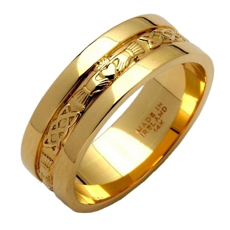 Claddagh & Celtic Knot Wedding Band with Wide Sides