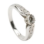 Cette bague de fiançailles d'une grande élégance est ornée d'un nœud de la Trinité sur l'anneau. Le diamant, serti haut, est magnifiquement mis en valeur par les ornements qui l'entourent. Ce qui rend cette bague si particulière, c'est qu'elle intègre l'histoire et la tradition du motif du nœud de la Trinité.