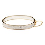 Le bracelet jonc Guerrier Celte en argent et or laminé s'inspire des motifs du somptueux calice d'Ardagh et figure parmi nos meilleures ventes. Il présente des gravures reproduisant les ornements en forme de bouclier et les détails finement travaillés du calice.