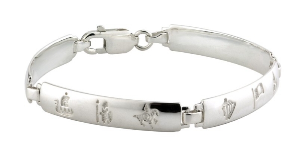 The story of the history of Ireland is told in a series of symbols engraved in to the History of Ireland Ladies Silver 4 Link Bracelet. Round towers, just like Clonmacnoise are one of the featured symbols. The other 11 symbols include the Circle of Life, Saint Patrick, Vikings, the Norman Invasion, Battle of the Boyne, United Irishmen, Irish Flag, Famine, Famine Ships, the GPO and Partition.