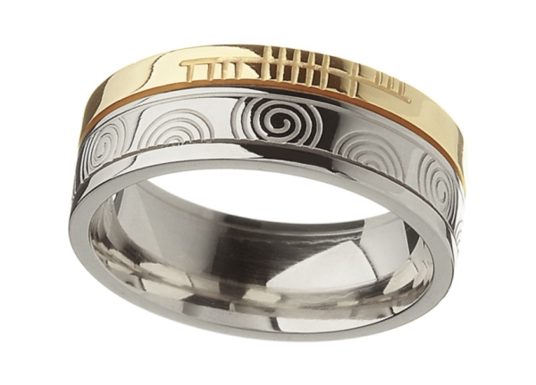 The Newgrange Faith rings come in sterling silver, yellow gold, white gold and two tone variations. These stunning rings feature spiral shapes found on the Newgrange megalithic monument. They are also inscribed with the word "Faith" written in ancient Ogham script.