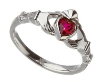 Les bagues en provenance d'Irlande ont une belle sélection d'idées cadeaux Ruby pour ce mois de juillet et, de plus, elles sont intégrées à un claddagh traditionnel, le symbole irlandais traditionnel pour l'amour, la loyauté et l'amitié: