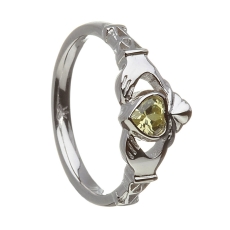 Cette pierre de naissance d'août est particulièrement belle et, dans le cadre de sa gamme de pierre de naissance de Claddagh , des anneaux d'Irlande ont un anneau de Claddagh présentant la pierre de peridot au centre, disponible en argent, 10k et 14k d'or jaune et aussi en or blanc 10k et 14k.