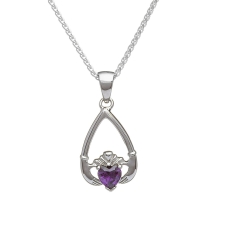 Si vous souhaitez compléter ce magnifique ensemble de bijoux et ajouter à l'anneau et aux boucles d'oreilles, il y a aussi un magnifique pendentif Claddagh avec de la pierre améthyste disponible à nouveau dans un choix d'argent, 10k et 14k d'or jaune et aussi en or blanc 10k et 14k .