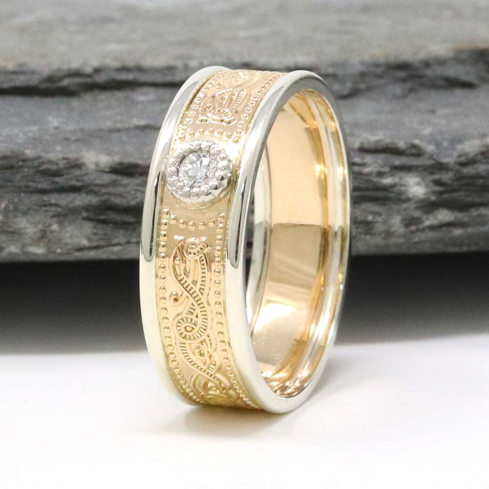 Choisir une alliance est l'occasion de célébrer sa créativité. Parmi les plus beaux trésors jamais créés en Irlande, véritable joyau de l'orfèvrerie irlandaise, figure le calice d'Ardagh . Cette alliance sertie de diamants, inspirée du précieux chef-d'œuvre du VIIIe siècle, est ornée de gravures reproduisant celles du calice.