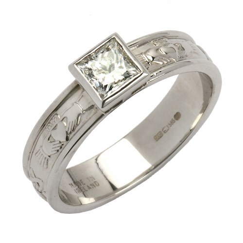 Claddagh Solitaire Ring with Princess Cut Diamond