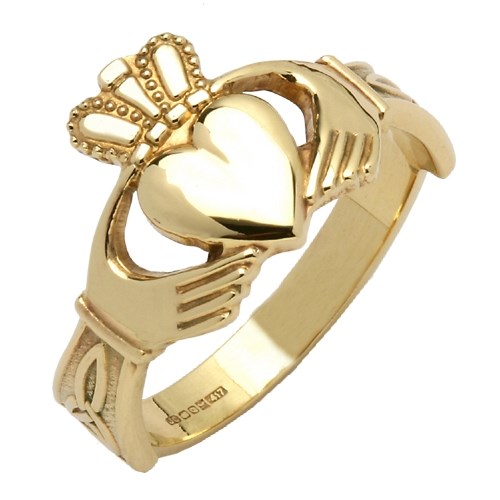 Gents Trinity Knot Yellow Gold Claddagh Ring
