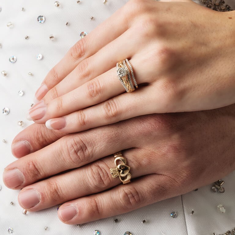 La bague Claddagh arbore un cœur en son centre, symbole d'amour. Ce cœur est soutenu par des mains, représentant l'amitié, et surmonté d'une couronne, symbole de fidélité. Il existe de nombreuses façons de porter cette bague, selon le statut de la relation et le message que la personne qui la porte souhaite transmettre quant à sa disponibilité ou son indisponibilité en amour. C'est un choix classique et intemporel qui traversera les siècles.