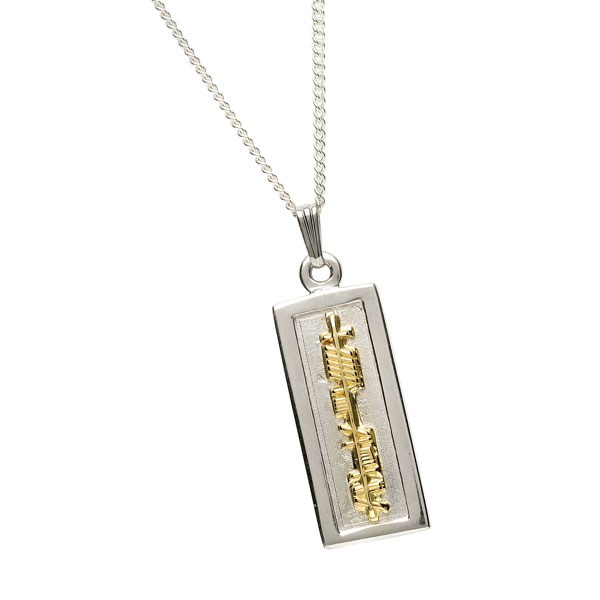 Ce pendentif est disponible en argent et gravé d'un texte en or 18 carats.
