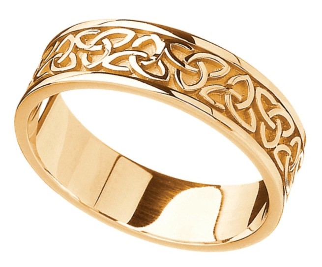 Il nodo intramontabile della Trinità non ha né inizio né fine. È l'abbellimento perfetto per una fede nuziale in quanto può essere abbinato bene a qualsiasi anello di fidanzamento in quanto il modello è semplice e sottile. Questa solida fascia in oro giallo è una bellissima scelta di fedi nuziali celtiche che resisterà alla prova del tempo.