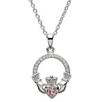 Questo elegante ciondolo Claddagh con pietra portafortuna di giugno con La pietra di zirconia cubica di alessandrite è disponibile in argento sterling massiccio.