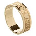 The warm glow of yellow gold gives this ring a classic and enduring appeal - perfect for daily wear or as a statement of your lifelong commitment. The Celtic-inspired symbols and inscription are subtly integrated around the band, providing beauty that’s personal yet not overwhelming. Smooth inside finish ensures comfortable wear, while the durable band supports everyday life without losing elegance.