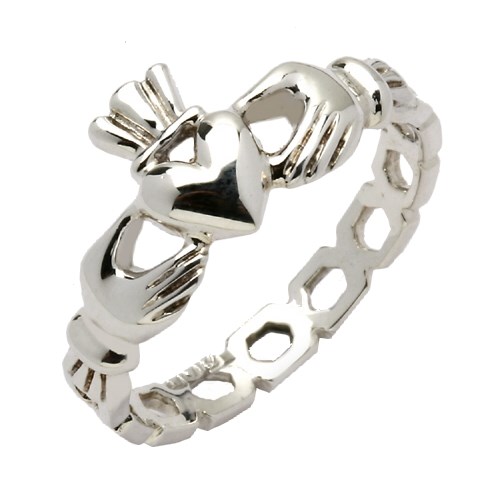 If you would like a Claddagh ring that will prove to be a talking point then this solid sterling silver ladies Mo Chroi pierced silver Claddagh ring is the choice to make.