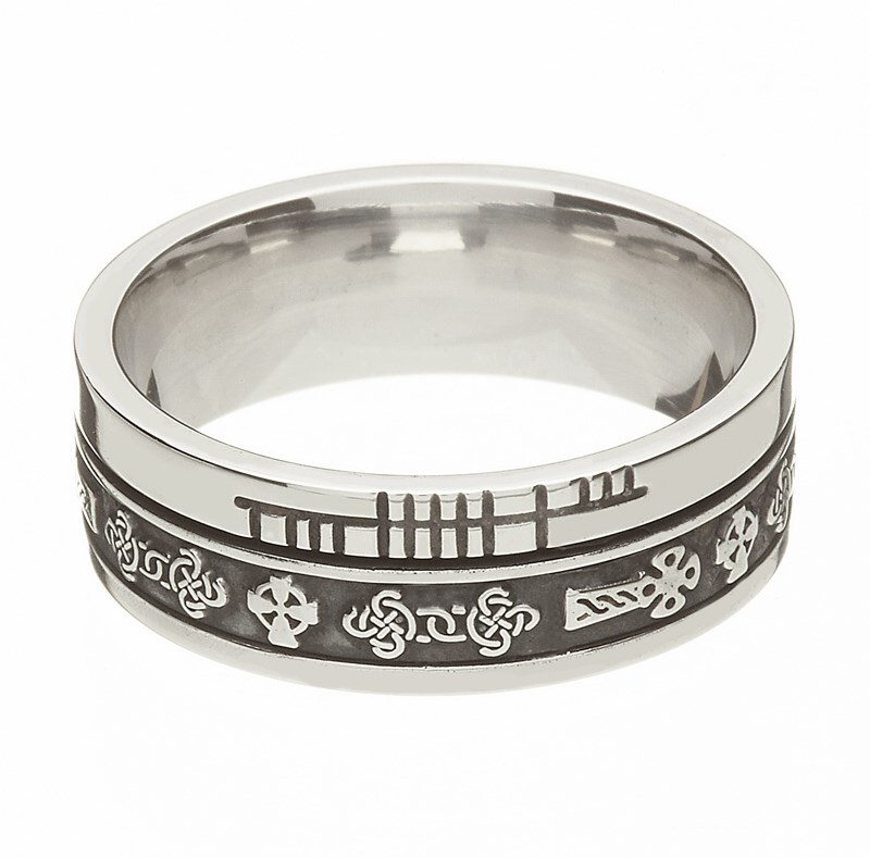 There is also an additional feature of beautiful markings on the other part of the ring which mark out the word ‘Faith’ – written in Ogham – which is an ancient Irish language which looks particularly beautiful in inscriptions.