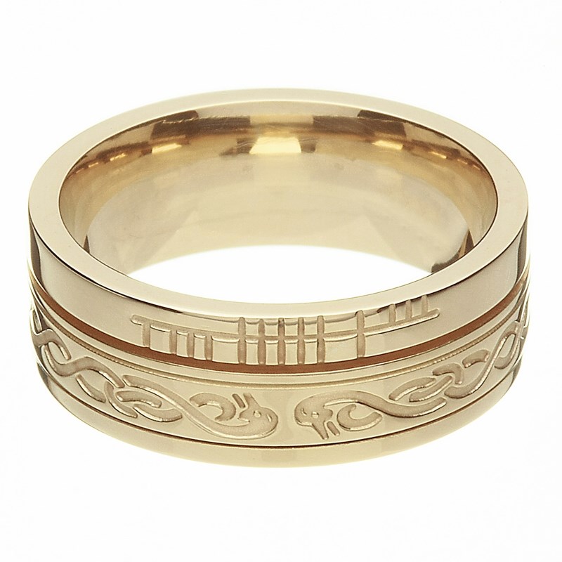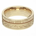 One side of our Le Cheile Faith Band is designed with the stunning 'le Cheile' motif, which in Irish means 'Together', making this a perfect choice for a wedding band. The design is inspired by the artwork found in ancient Irish manuscripts like the Book of Kells.