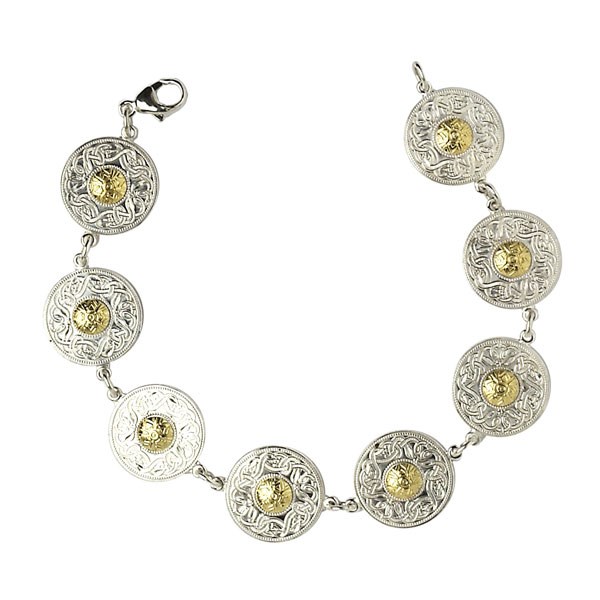 Ideal for those who love all things Celtic, the Celtic Warrior Bracelet with 18k Gold Bead is unique and eye catching with its distinct design; a series of linked warrior shield discs, inspired by the handcrafted engravings of the 8th century Ardagh Chalice.
