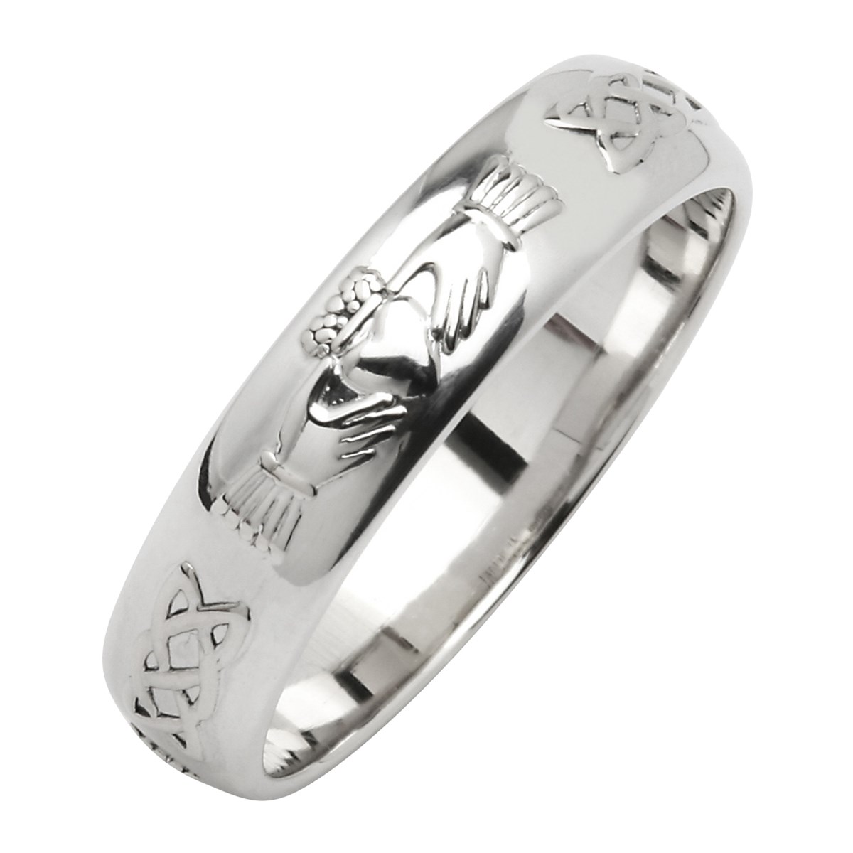 Claddagh & Celtic Knot White Gold Wedding Band - Size 5 3/4