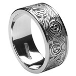 The Triscele is woven in to this silver wedding band and the pattern surrounds the entire ring. It is an elegant detail that adds a handcrafted Irish element to the piece.