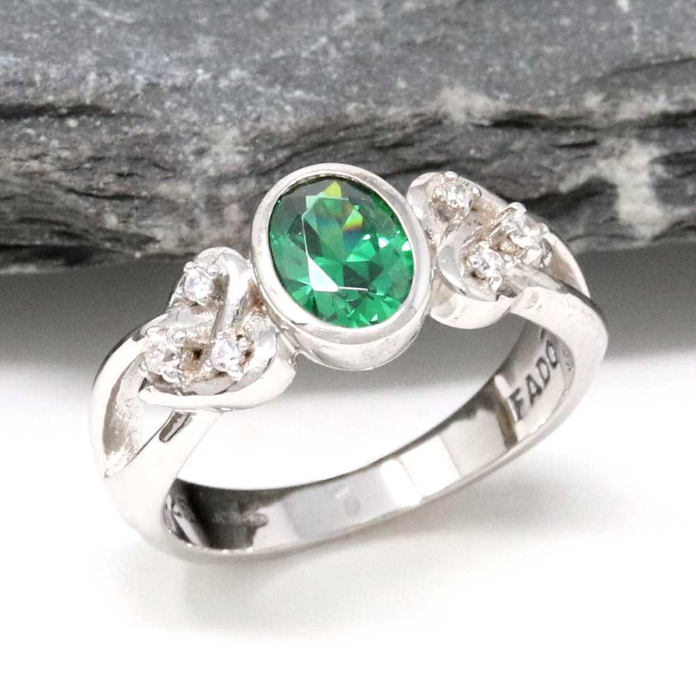 The stone sits at the center, shining out in bright green and is very evocative of the island of Ireland. There is another important element to this design as on either side there is a heart shaped Celtic influenced knot-work motif. These knots were used extensively in the Celtic style of insular art and they are also known as mystic knots or endless knots.