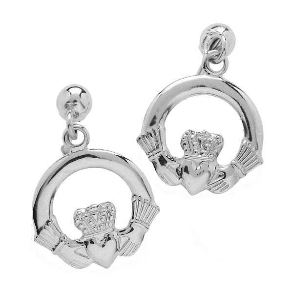 Over 300 years ago in the ancient Irish fishing village of Claddagh, the romantic story of the Claddagh came to life. It’s a story of love (the heart); friendship (the hands) and loyalty (the crown), all encompassed in these beautiful white gold drop earrings, a wonderful showcase of Irish design.