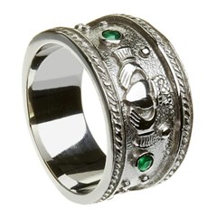 Claddagh Heavy Stone Set Silver Ring